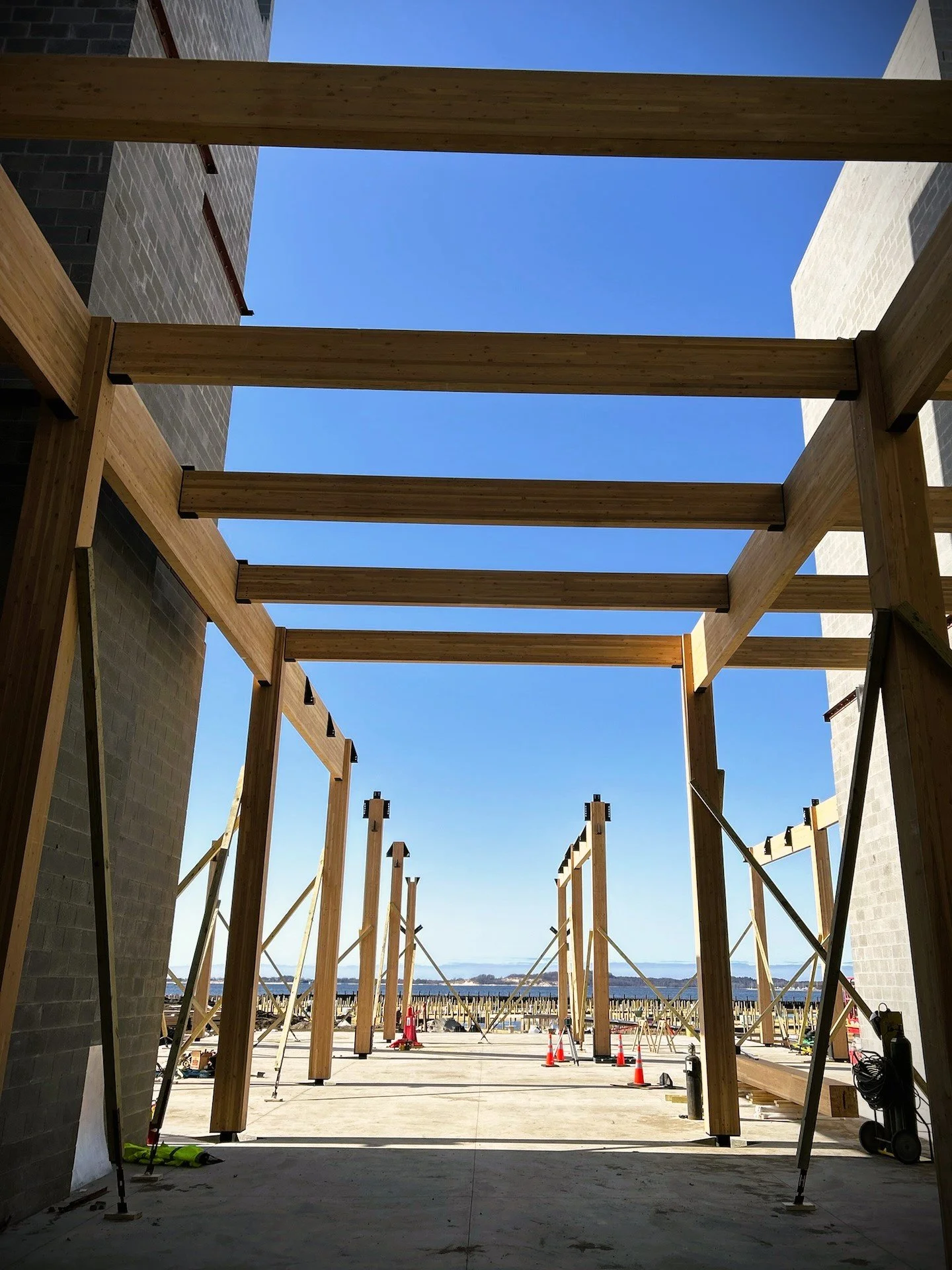 Scope of Work: Installation of Mass Timber Canopies and Skybridge soffits.